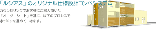 お選びいただいた建築家3名がルシアスの標準仕様書に沿ったプラン作成を行います。配置図・平面図・立面図・パース等 |